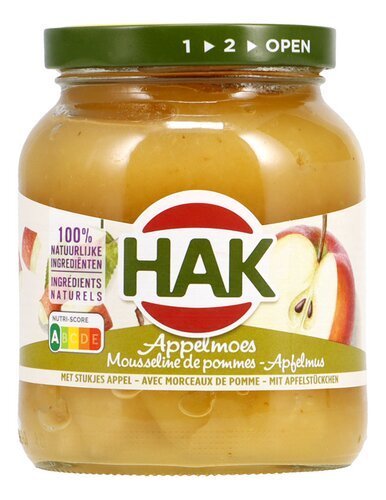 HAK mousseline de pommes mor. boc 350g – HAK apple mousseline mor. jar 350g – Boîtes, conserves et bocaux>Fruits en conserve et bocal>Compotes de pommes bocal – Cans, jars and preserves>Canned and jarred fruits>Jarred applesauce