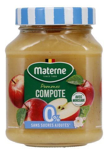 MATERNE compote pomme s.sucre ajou. 350g – MATERNE applesauce with added sugar. 350g – Boîtes, conserves et bocaux>Fruits en conserve et bocal>Compotes de pommes bocal – Cans, jars and preserves>Canned and jarred fruits>Jarred applesauce