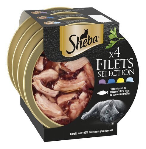 SHEBA chat filets poissons blanc 4x60g – SHEBA cat fillets white fish 4x60g – Animaux>Chats>Raviers alu chats – Animals>Cats>Aluminum cat trays