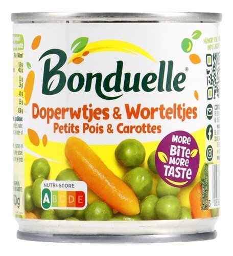 BONDUELLE pet.pois & carottes cons 150g – BONDUELLE small peas & carrots 150g – Boîtes, conserves et bocaux>Légumes en brique, conserve et bocal>Petits pois et carottes (conserve et bocal) – Cans, tins and jars>Cartoned, canned and jarred vegetables>Peas and carrots (canned and jarred)